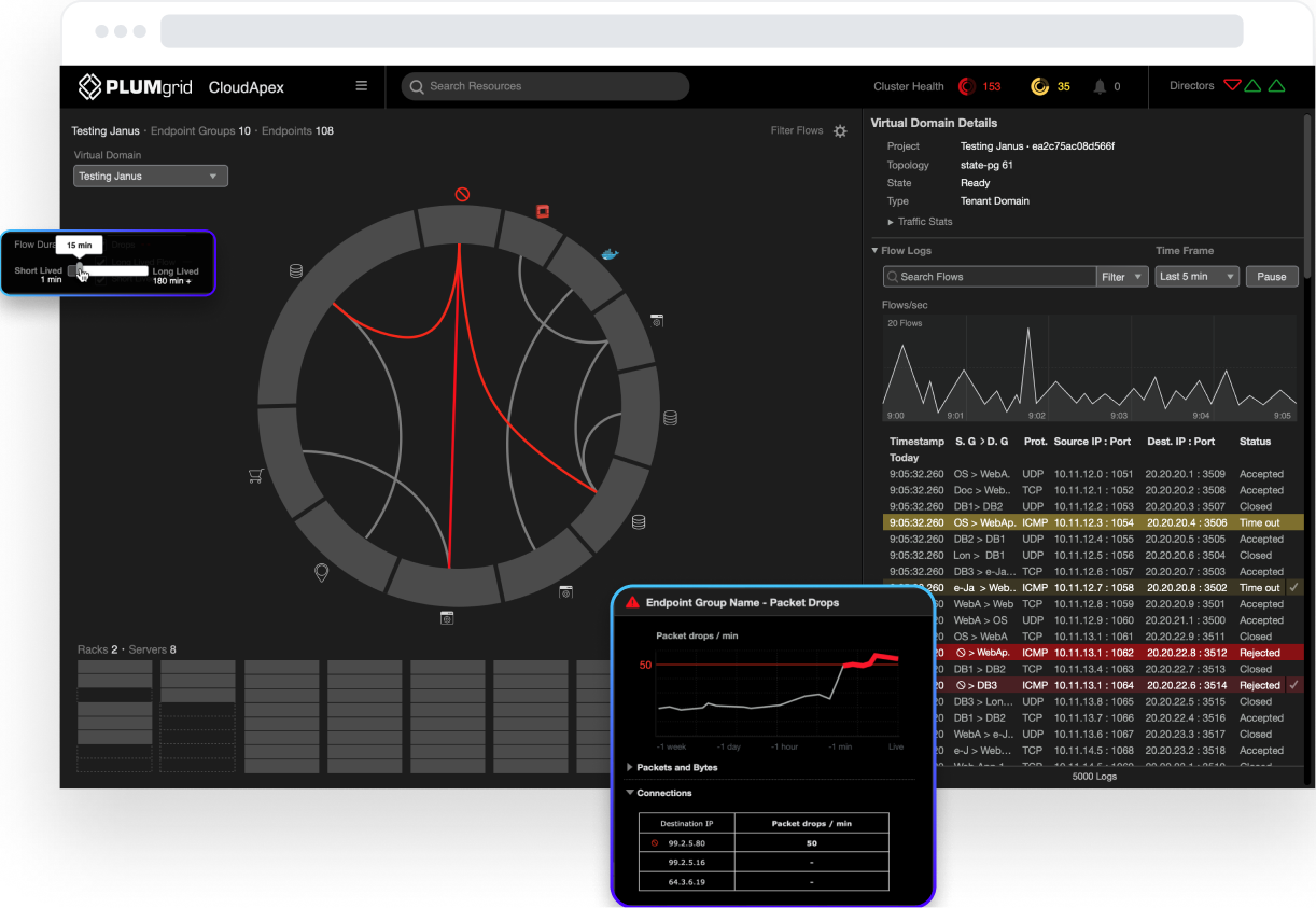 A real-time, interactive interface that empowers network and cloud administrators to visualize network traffic behaviours, apply security policies, and detect anomalies or active attacks across virtualized and hybrid environments—enhancing visibility, control, and rapid incident response.